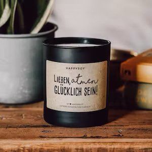 Eine Sojawachskerze im Glas mit passendem Spruch, stilvollem Design und herrlichem Duft. Plastikfrei, handgemacht & vegan. Das ist HAPPYSOY®.